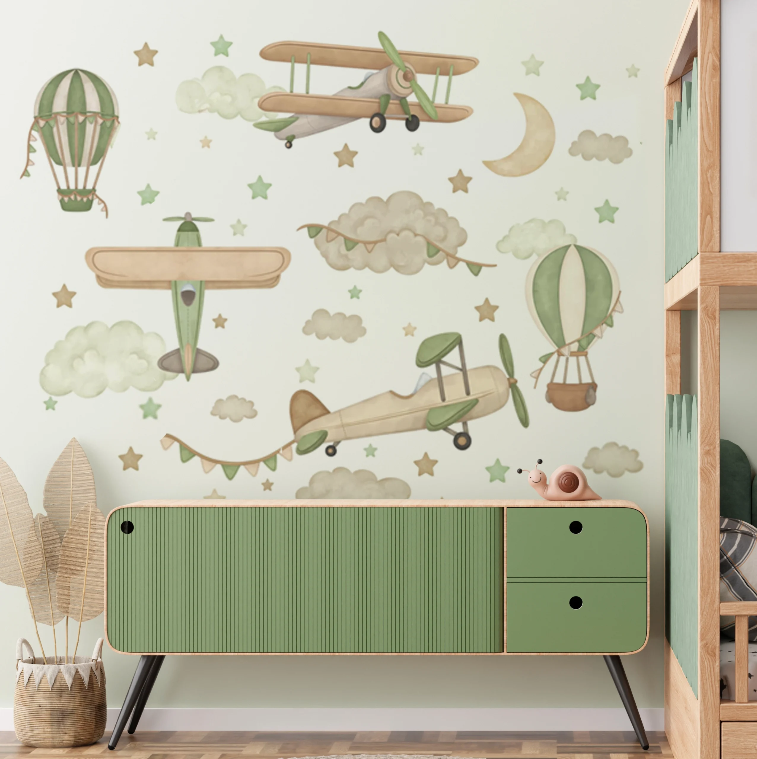 Home - برچسب دیواری بالن - برچسب دیواری بالن و هواپیما سبز کد 1764