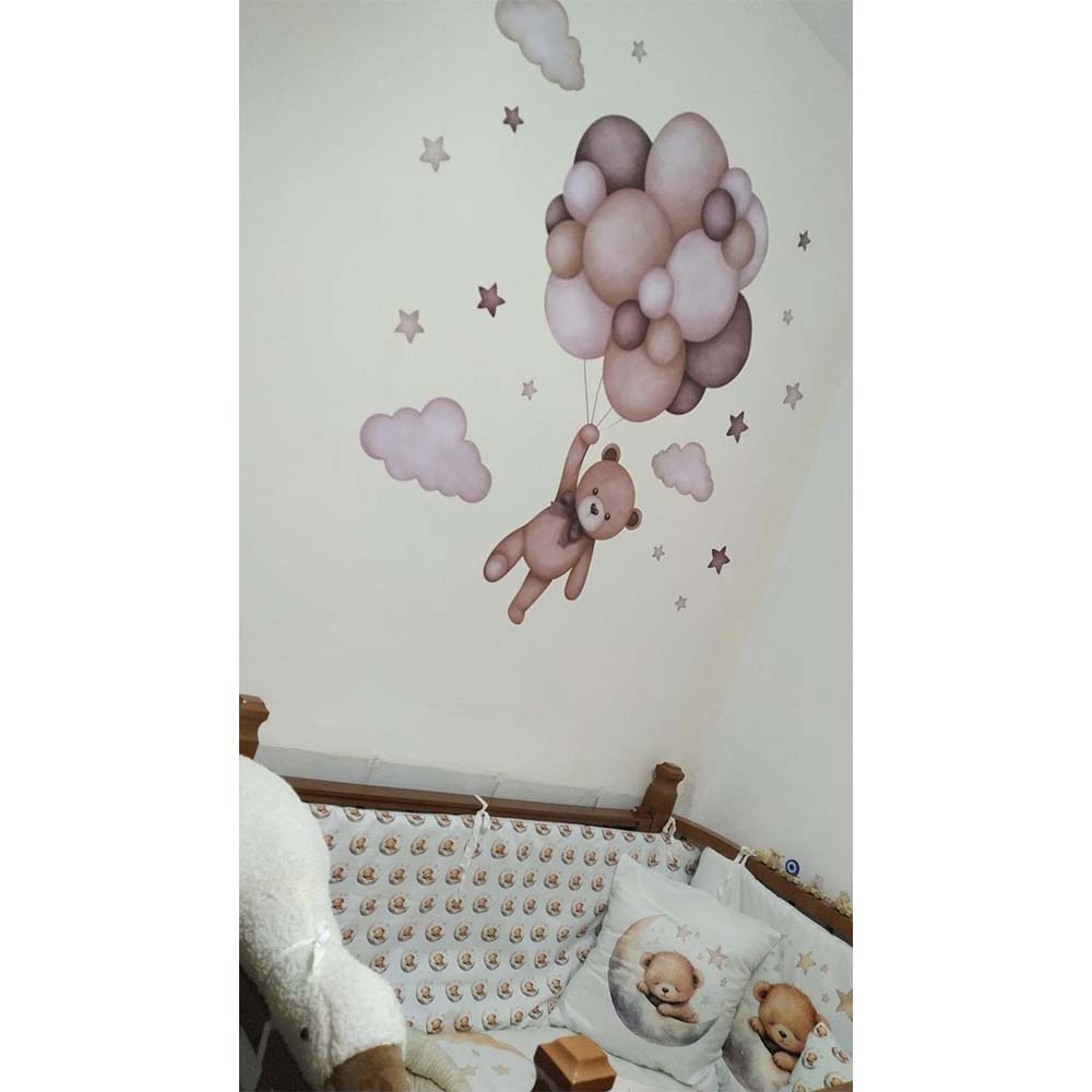 دیوار کنار تخت، بالای میز بازی یا حتی کمد لباس، همه میتوانند محل امنی برای این تدی دوستداشتنی باشند. این برچسب نه تنها حس بصری اتاق را گرمتر میکند، بلکه فضا را برای خیالپردازی، آرامش و خواب راحت آماده میسازد.