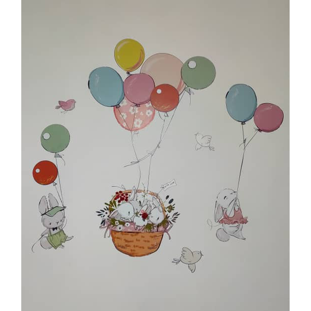 دنیایی پر از لطافت با برچسب دیواری سبد خرگوش ها